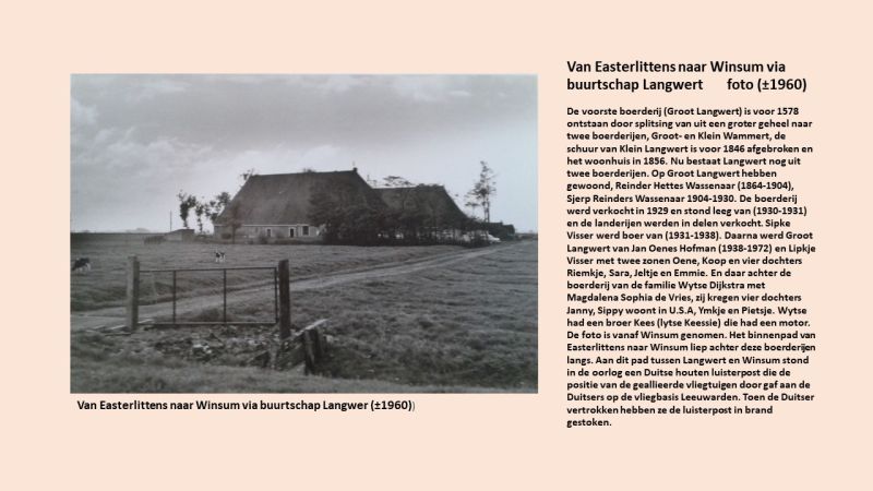 Langwert ©:HJM Buurtschap ten noorden van Easterlittens. Foto voorblad ©:HJM Lees meer Gerelateerde informatieOnderwerpenFoto’s Het binnenpad van Easterlittens naar Winsum (ca. 1960).Disclaimer Langwert (vóór 1990).Disclaimer Langwert vanaf Easterlittens (vóór 1991).Disclaimer Exif-data × × × IIIF Viewer × Reageren Via onderstaand formulier kunt u een reactie achterlaten voor de auteur of de eigenaar van het item. (Doarpsbelang Easterlittens)